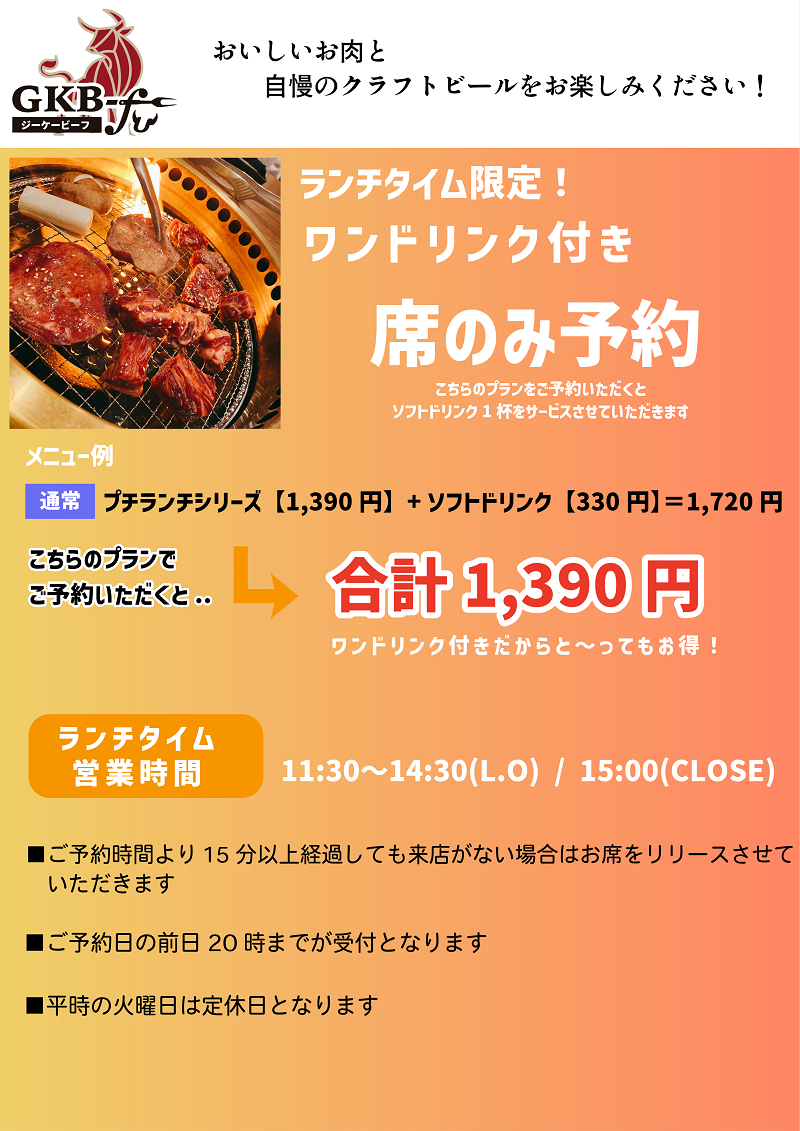 席のみ予約 13:00~
